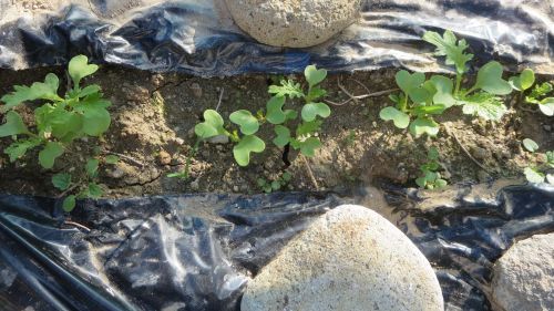 ワサビ菜、からし菜が順調に育てば12月末頃に収穫です