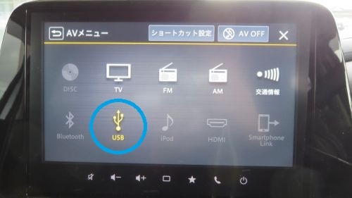 ナビで音楽メニューを選ぶと USBが有効になっているはず