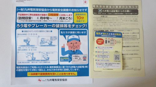 九州電気保安協会から電気安全調査に伺います、という案内がありました
